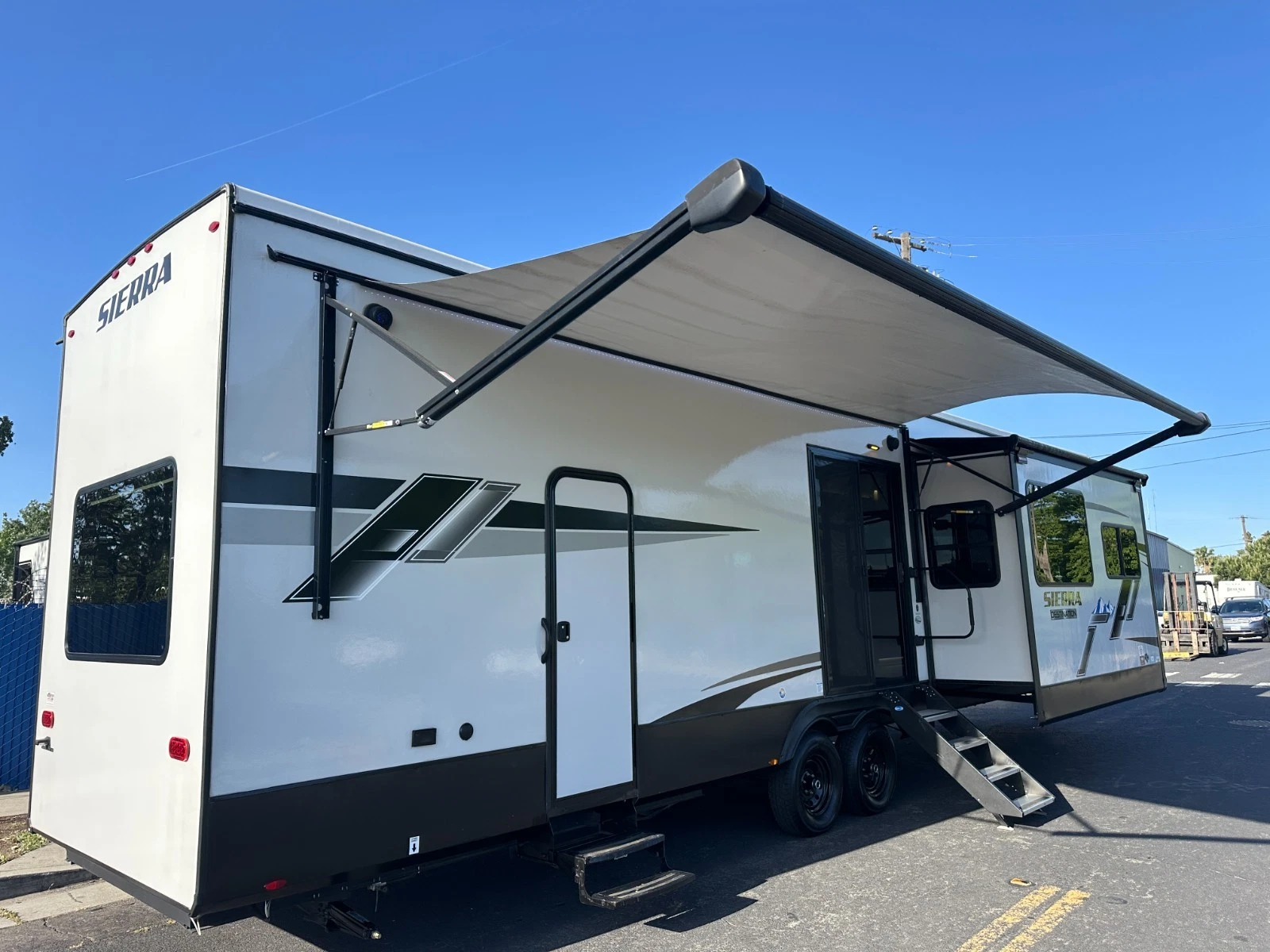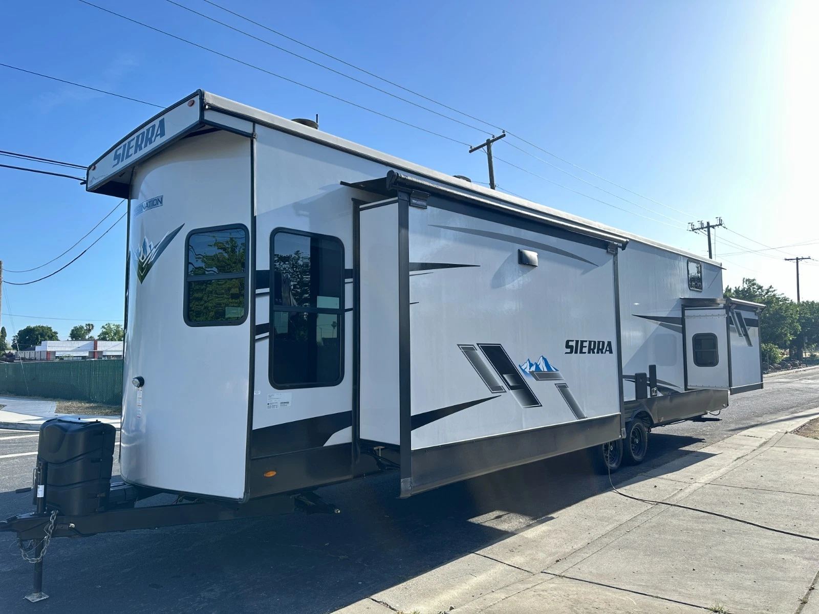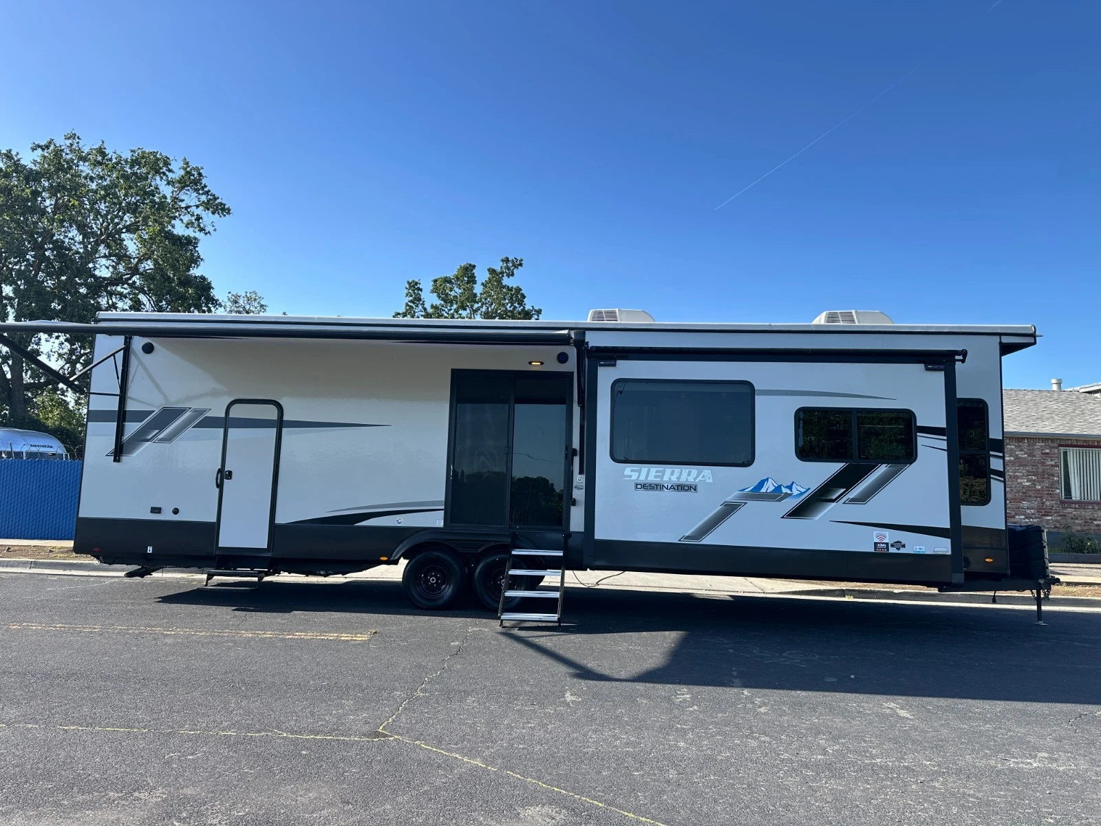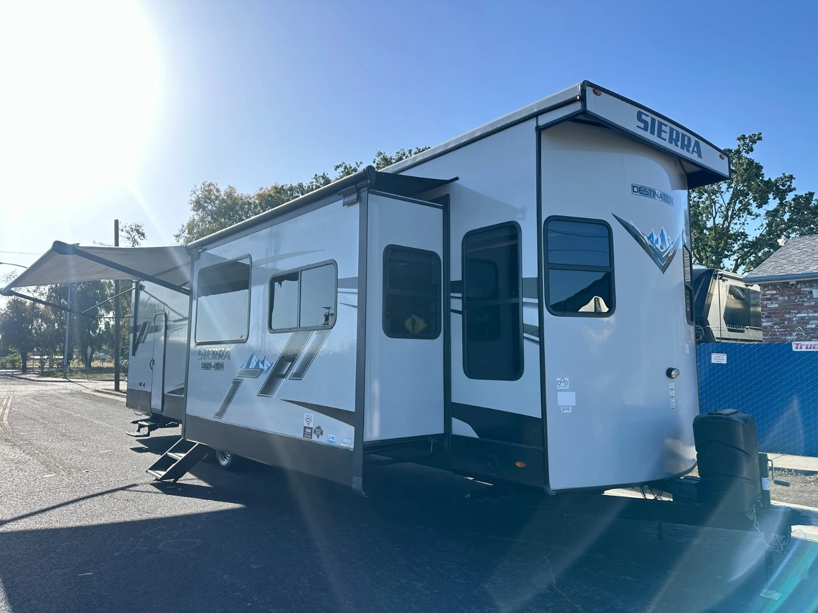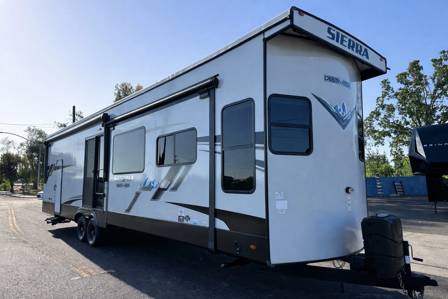 For sale is 2023 Forest River Sierra Destination 399LOFT trailer. Trailer is 40 feet 8 inches long, with 3 slide outs, Dry weight of 10,768 lbs, GVWR of 13,619, 50 gl Fresh water tank, 104 gl grey, and 52 gl black. This trailer has an electric awning with Led lighting, 2 air conditions, washer/dryer prep, night shades, tankless water heater, slide-out toppers, and much more. Inside features large living area upfront with Fireplace, sofa bed, two recliners and TV. Large kitchen with large residential refrigerator, pantry, solid counters, and dining table for four. Master suite with walk-around king bed, Its own TV area, and large closet. Large full bathroom has a spacious shower in the middle with a extra large loft upstairs. Please see over 150 pictures on our eBay listing.