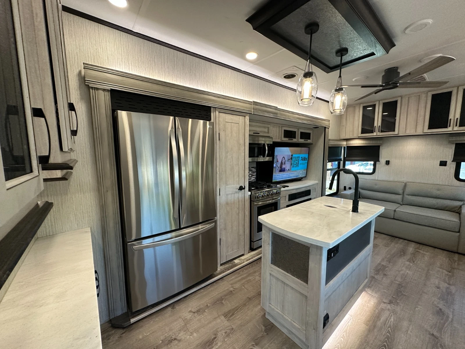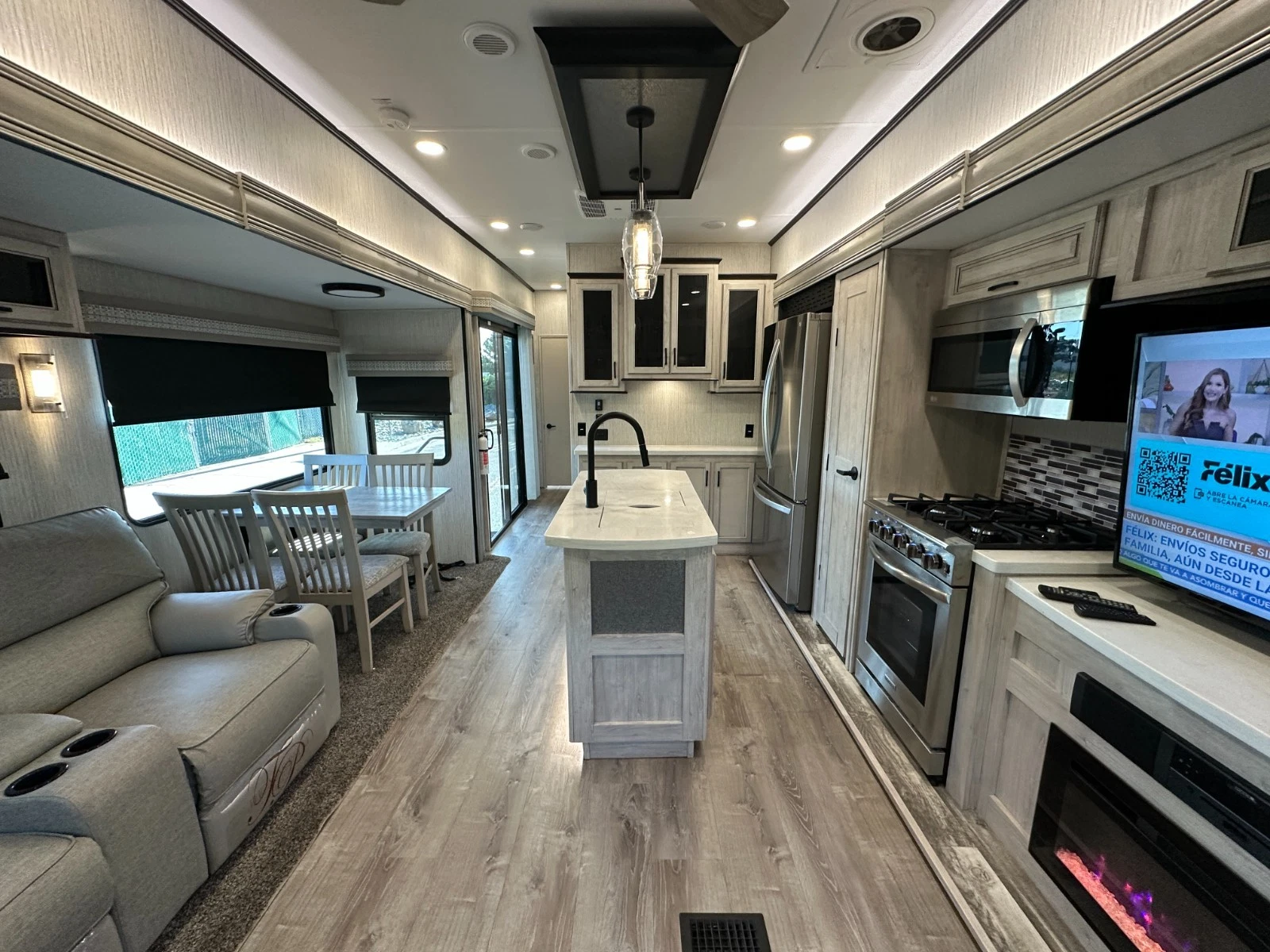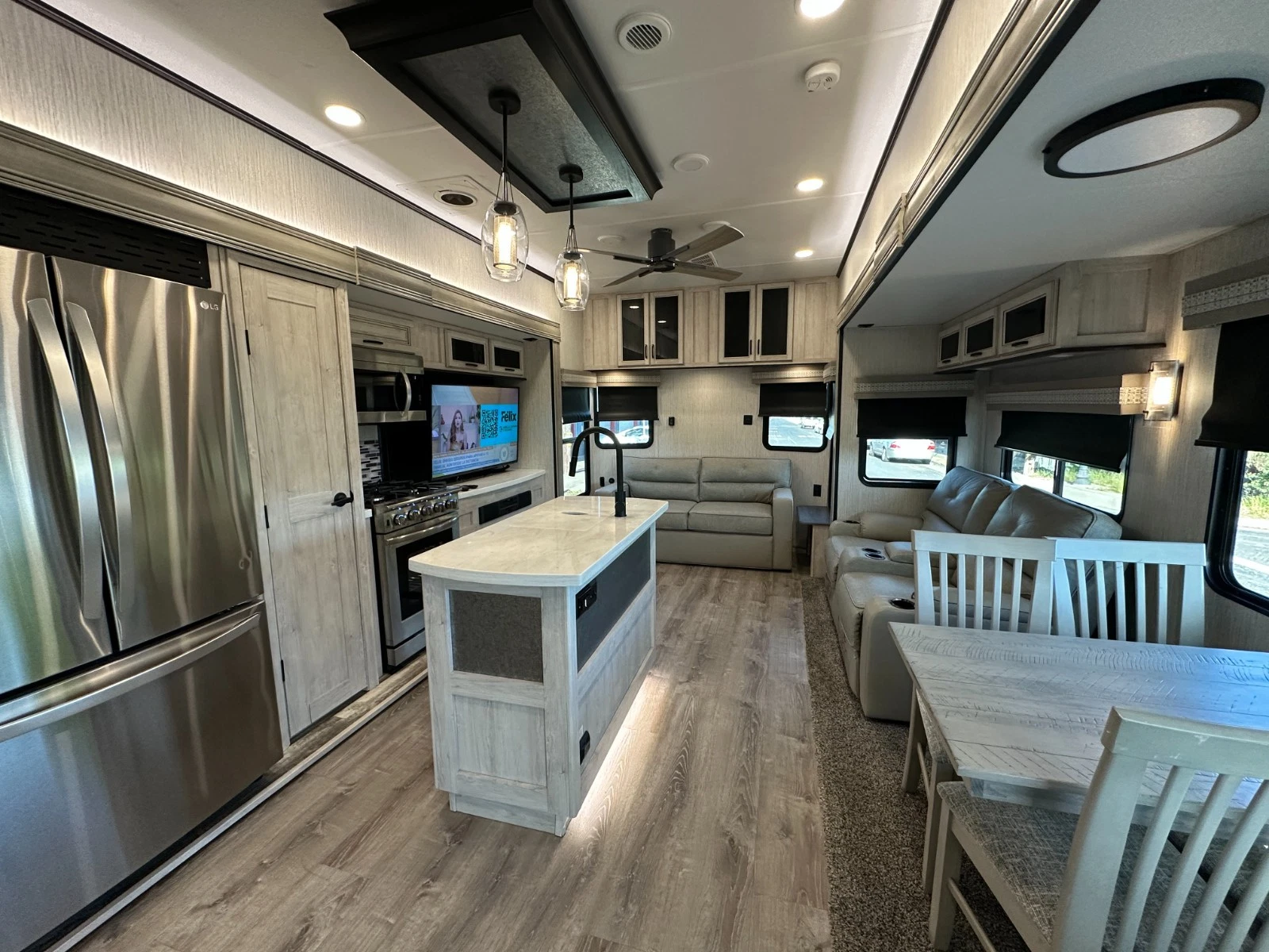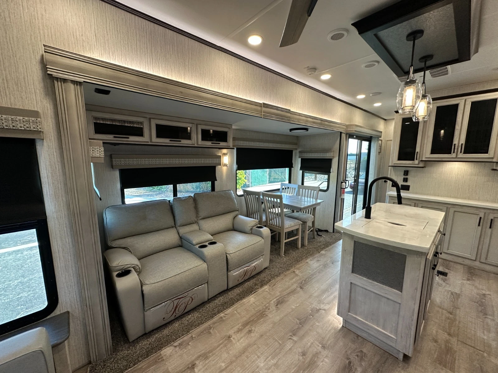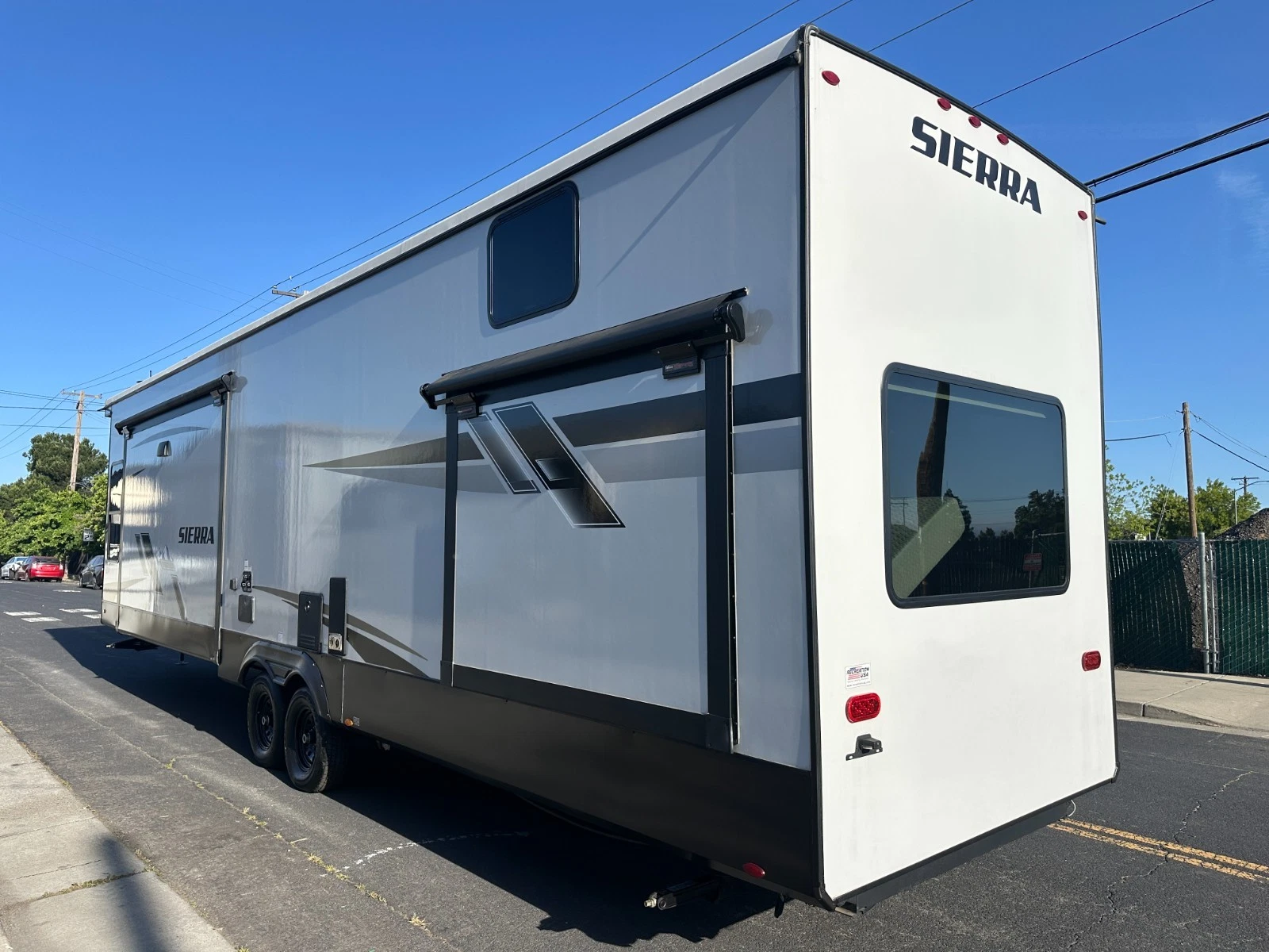 For sale is 2023 Forest River Sierra Destination 399LOFT trailer. Trailer is 40 feet 8 inches long, with 3 slide outs, Dry weight of 10,768 lbs, GVWR of 13,619, 50 gl Fresh water tank, 104 gl grey, and 52 gl black. This trailer has an electric awning with Led lighting, 2 air conditions, washer/dryer prep, night shades, tankless water heater, slide-out toppers, and much more. Inside features large living area upfront with Fireplace, sofa bed, two recliners and TV. Large kitchen with large residential refrigerator, pantry, solid counters, and dining table for four. Master suite with walk-around king bed, Its own TV area, and large closet. Large full bathroom has a spacious shower in the middle with a extra large loft upstairs. Please see over 150 pictures on our eBay listing.
