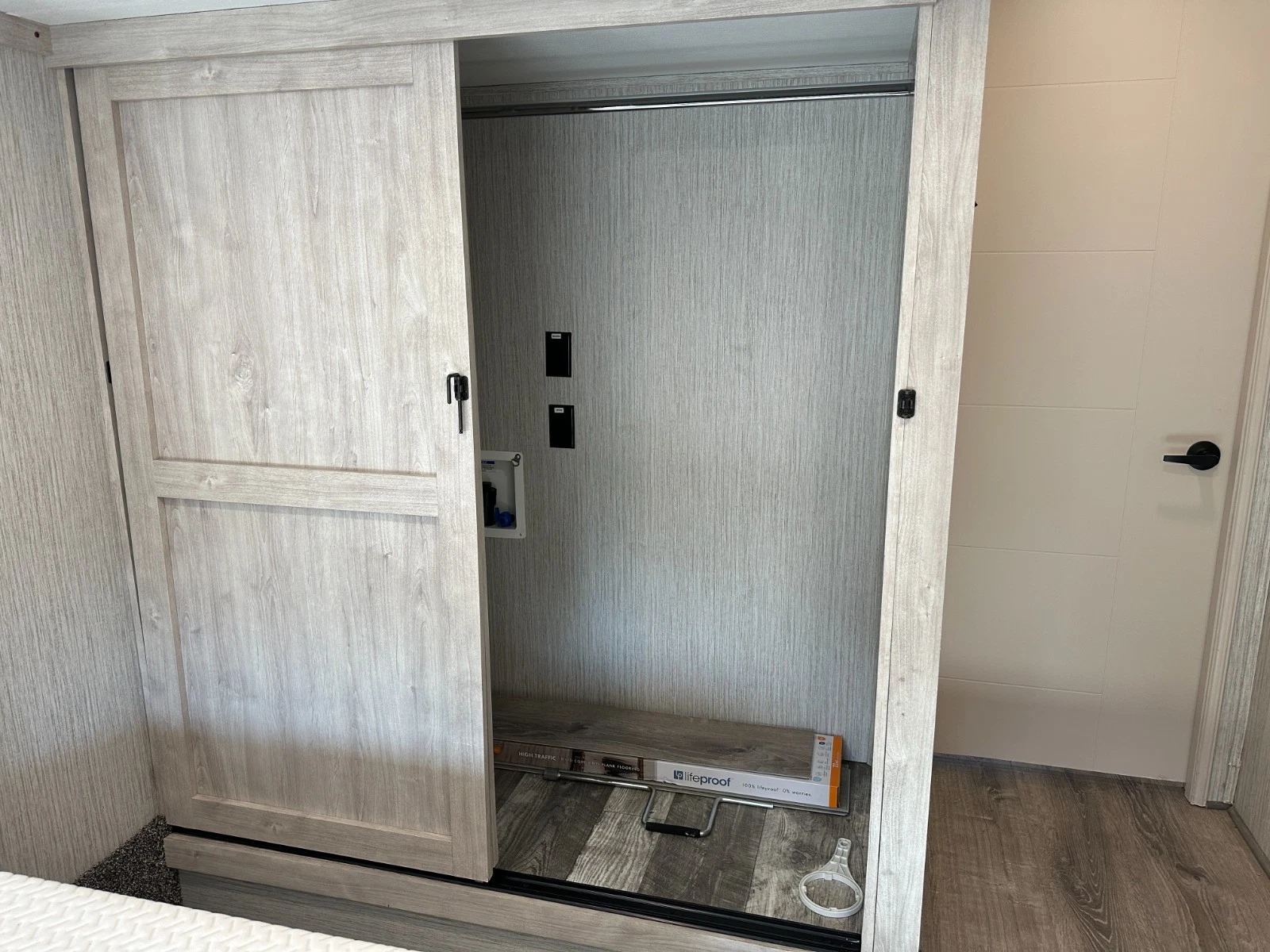 The trailer has a North Carolina Salvage title due to flood damage, most of main living space floor was replaced with new plywood and new water proof luxury vinyl wood floor. This trailer was over $85,000 when new, have it for large discount.