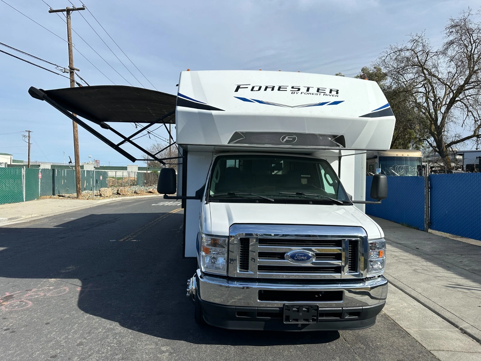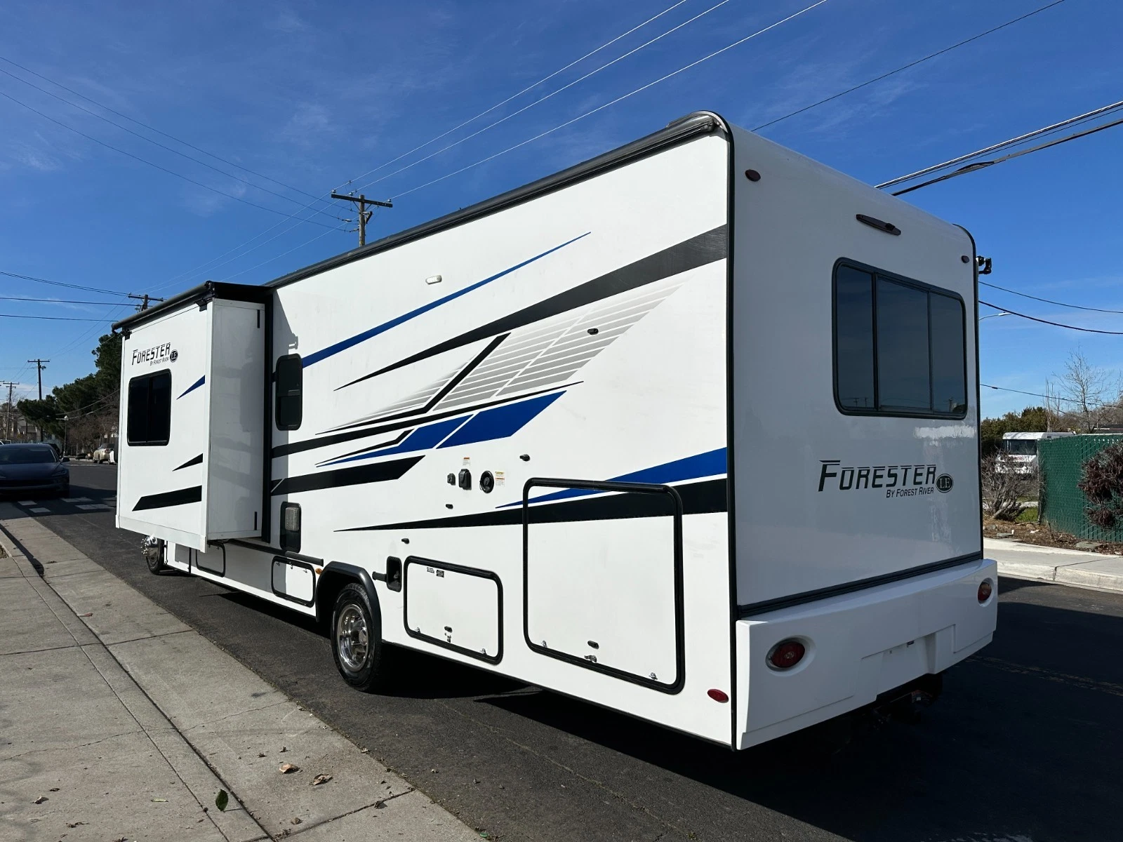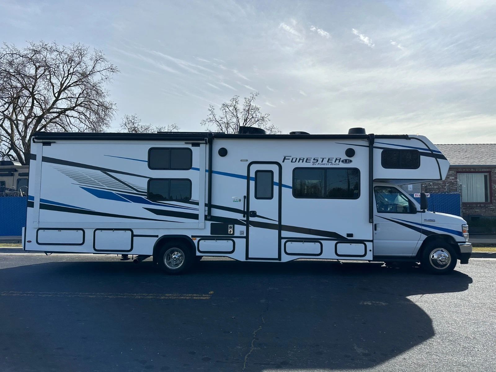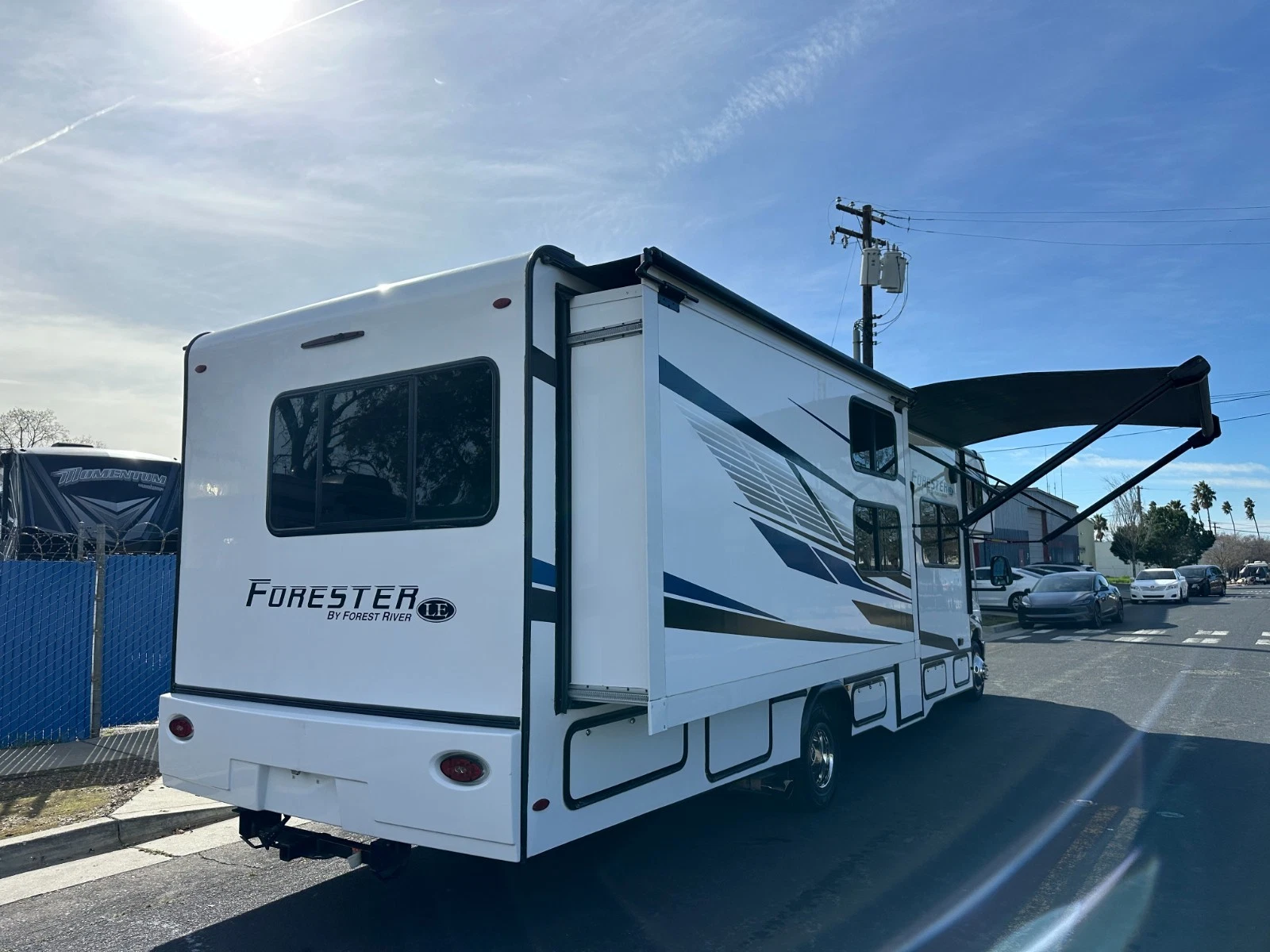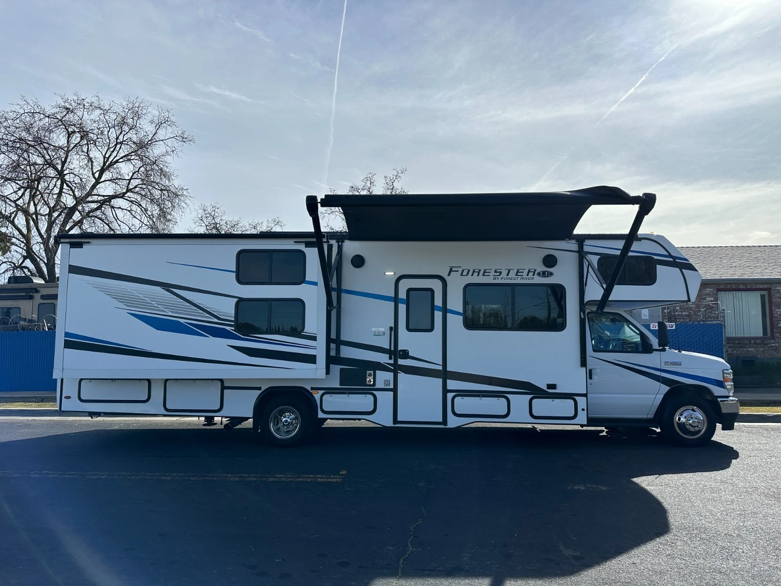 For sale is a 2023 Forest River Forester LE 3251DSLE on a Ford E4500 Chassis, with 7.3L V8 Gas engine, paired with 6-speed automatic transmission, with rear wheel drive drivetrain and Towing capacity of 7,500 lbs. Comes with cruise control, power windows, smart stereo with car play and side/rear camera system. The RV has 76,766 miles, measures 32 feet 3 inches in length, features electric awning with LED lighting, Exterior speakers, Solar, 44 gallon fresh water tank, 39 gallon grey water tank, 39 gallon black water tank and 55 gallon gas tanks, with a GVWR of 14,500 lbs and 12,161 lbs dry weight. This RV comes with built in Onan 4KW gas Generator with 852 hours, four point hydraulic self leveling jacks, all new tires, lithium batteries, Gas Stove, Microwave stainless Sink and much more. Please see over 220 pictures on our eBay listing.