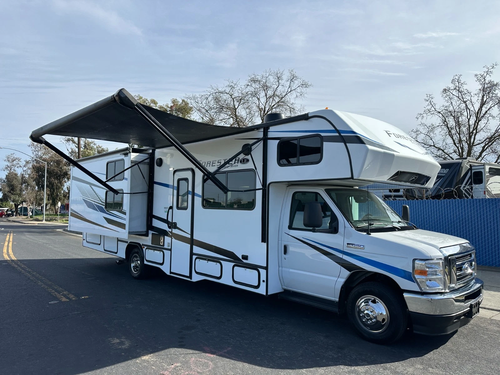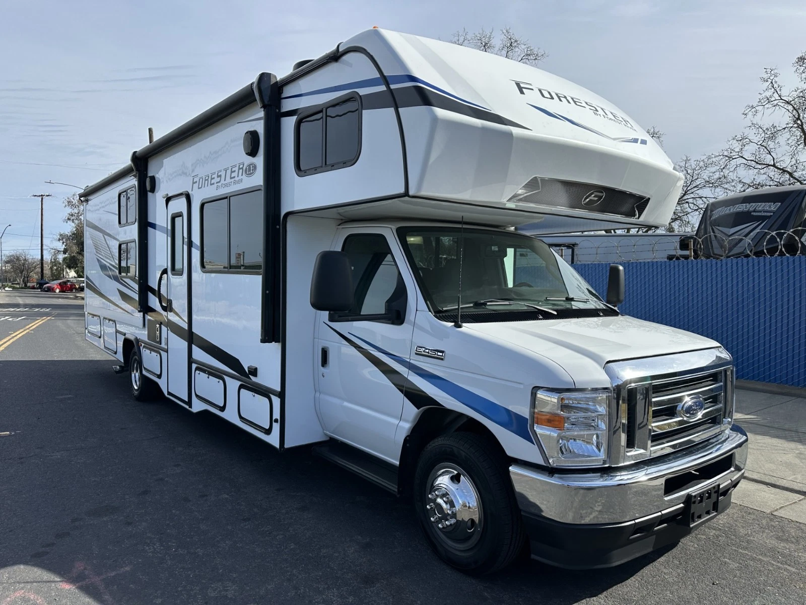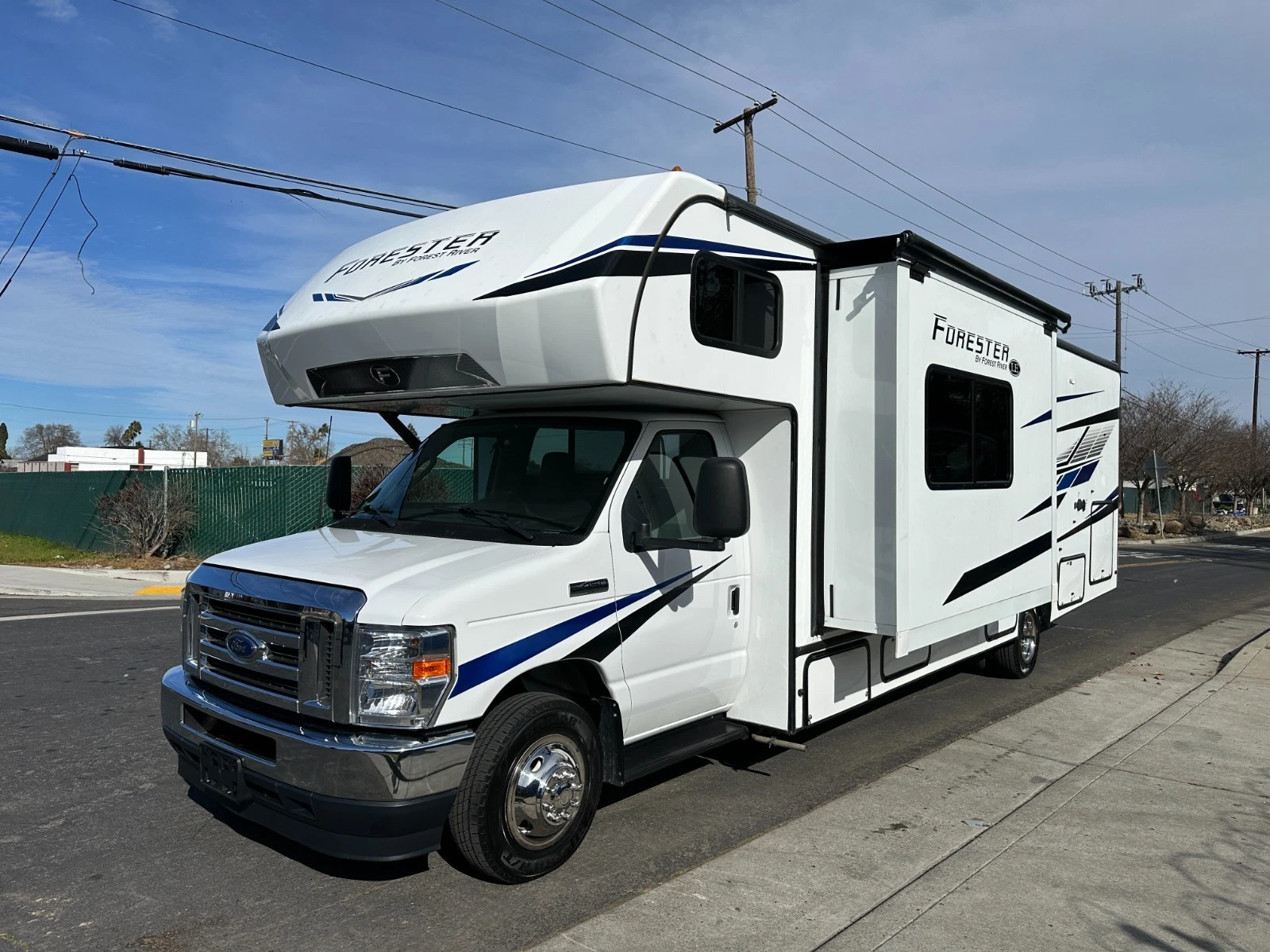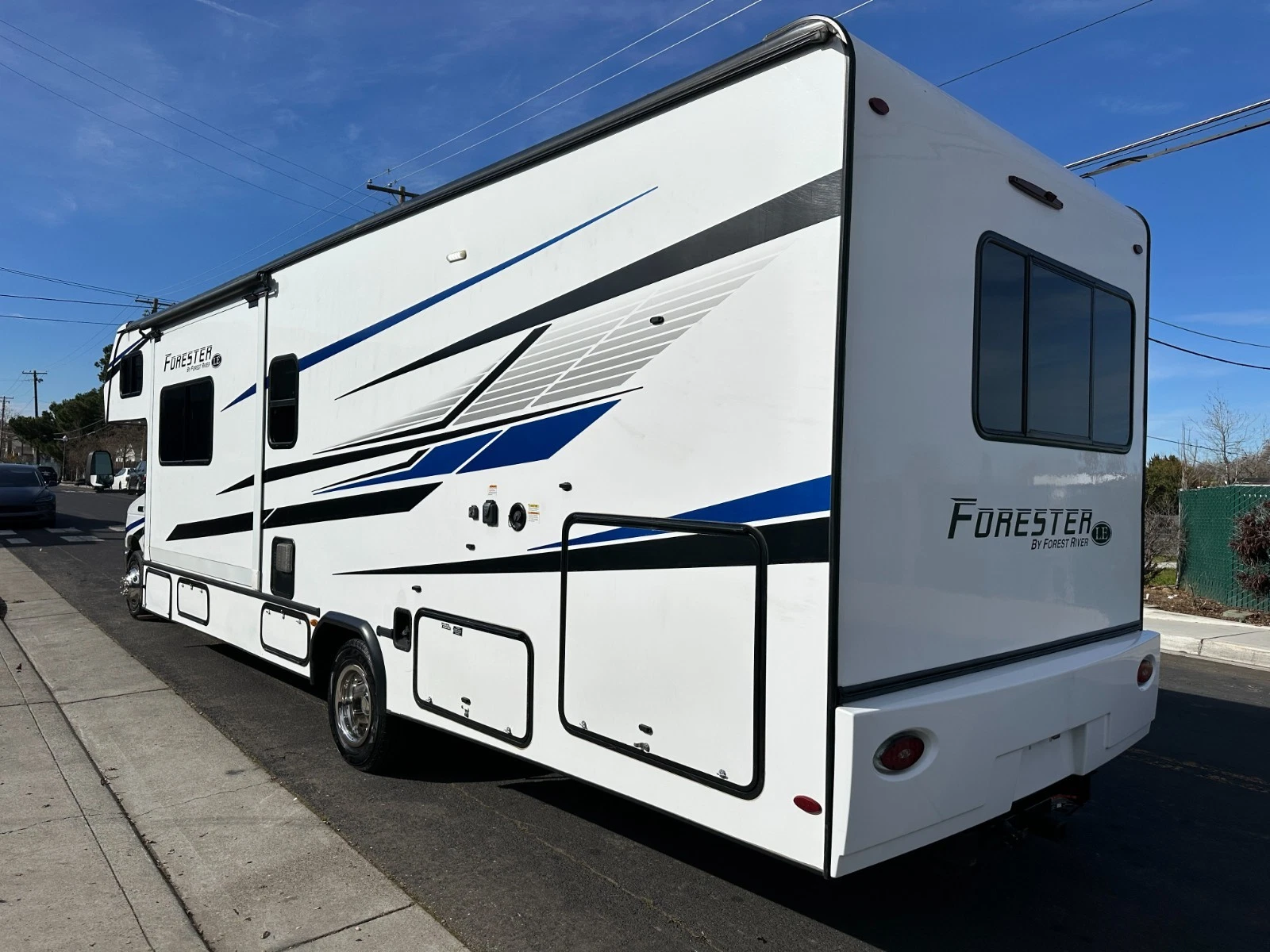 For sale is a 2023 Forest River Forester LE 3251DSLE on a Ford E4500 Chassis, with 7.3L V8 Gas engine, paired with 6-speed automatic transmission, with rear wheel drive drivetrain and Towing capacity of 7,500 lbs. Comes with cruise control, power windows, smart stereo with car play and side/rear camera system. The RV has 76,766 miles, measures 32 feet 3 inches in length, features electric awning with LED lighting, Exterior speakers, Solar, 44 gallon fresh water tank, 39 gallon grey water tank, 39 gallon black water tank and 55 gallon gas tanks, with a GVWR of 14,500 lbs and 12,161 lbs dry weight. This RV comes with built in Onan 4KW gas Generator with 852 hours, four point hydraulic self leveling jacks, all new tires, lithium batteries, Gas Stove, Microwave stainless Sink and much more. Please see over 220 pictures on our eBay listing.