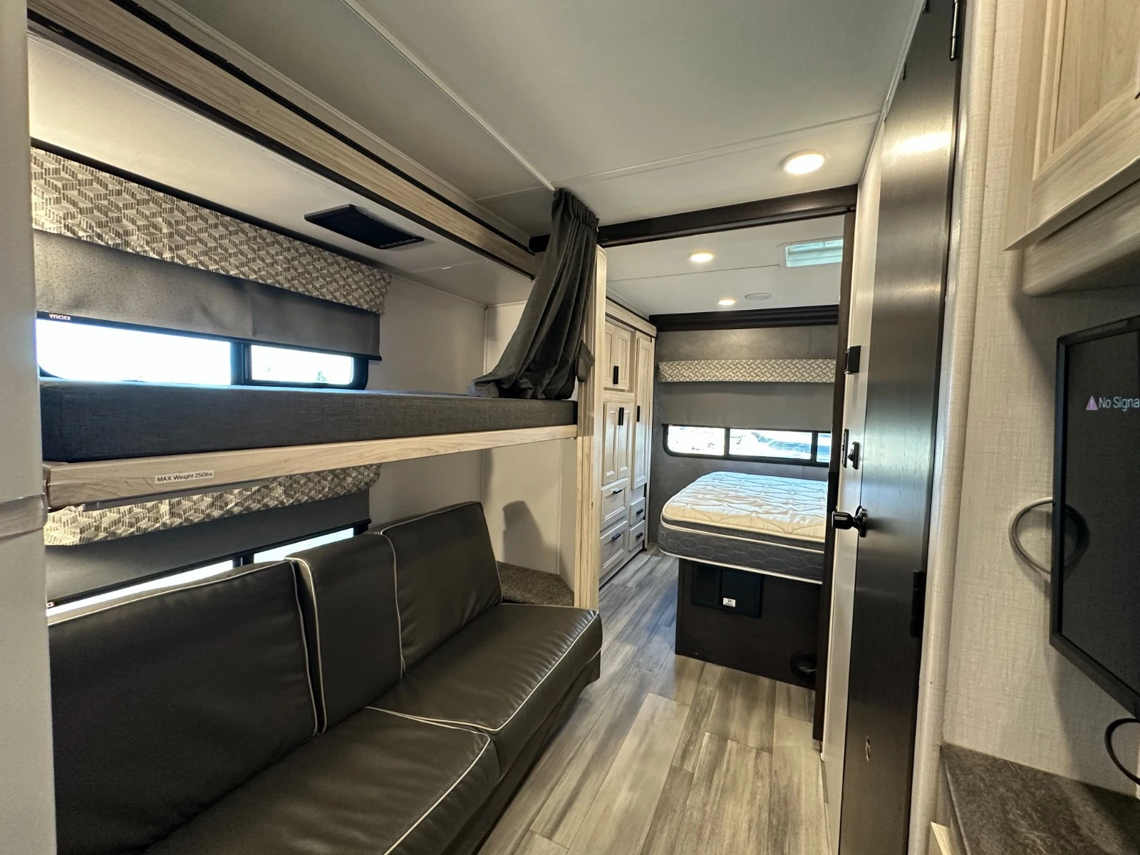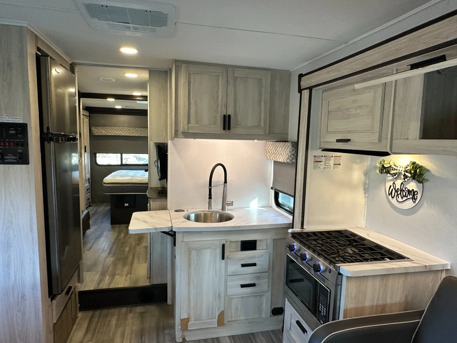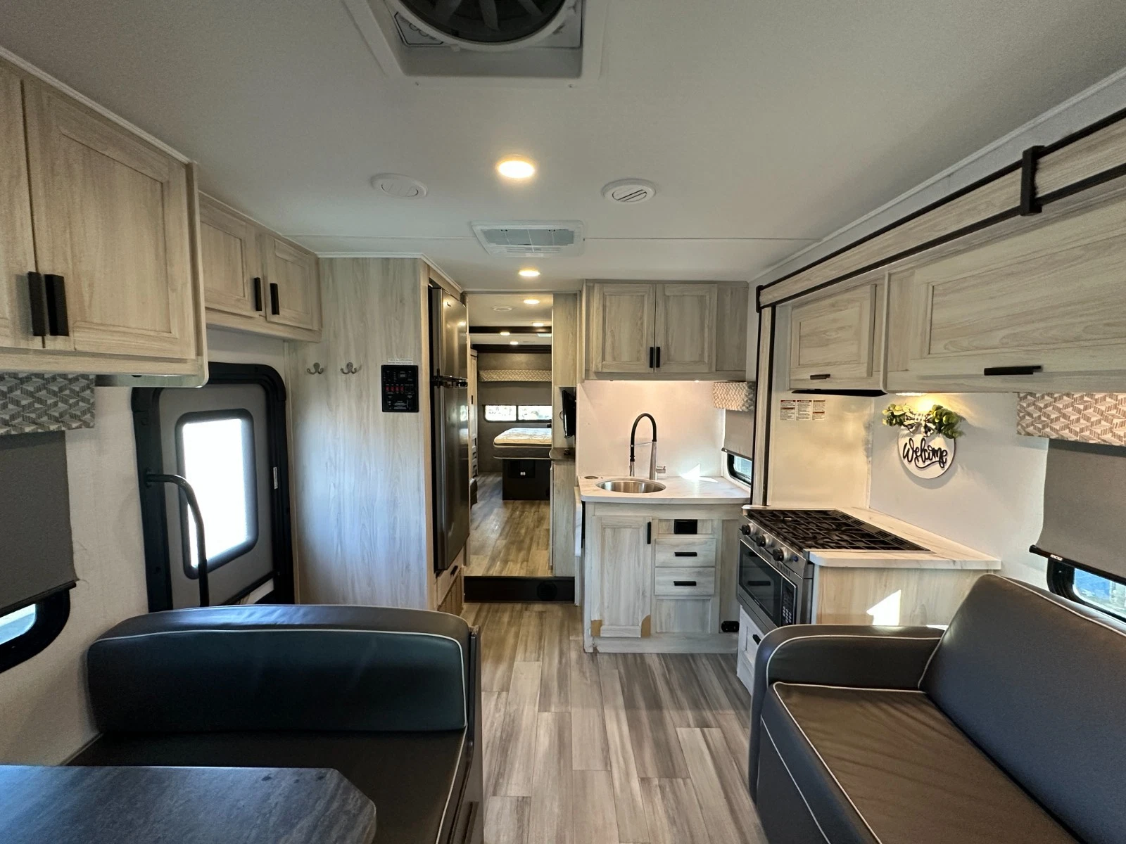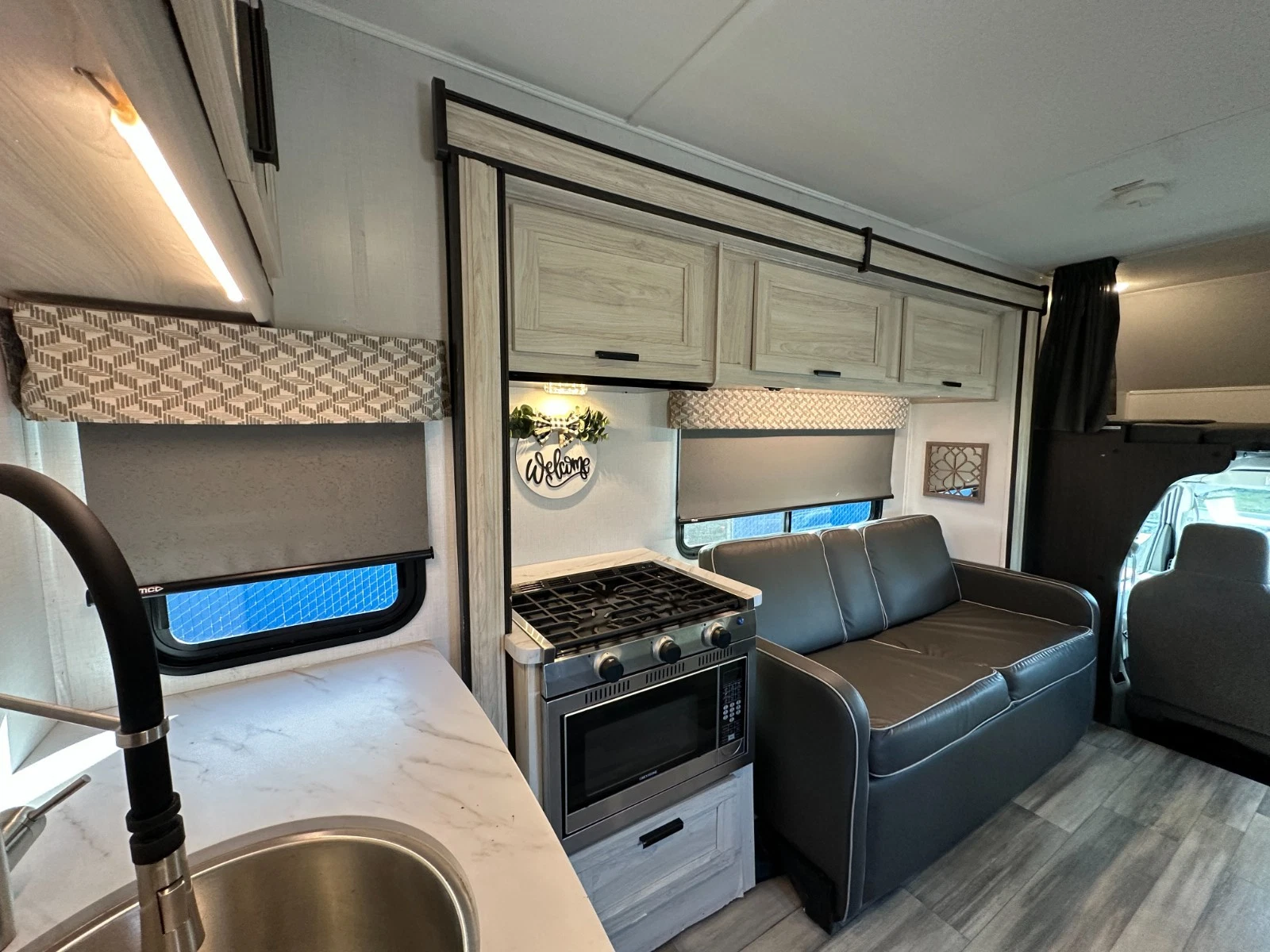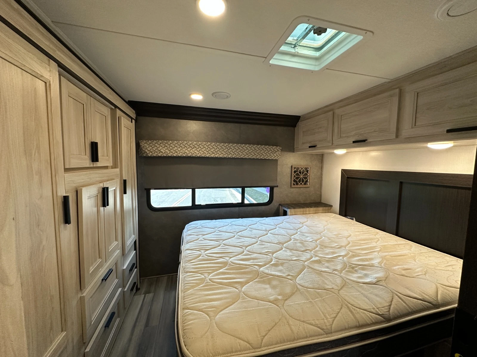 For sale is a 2023 Forest River Forester LE 3251DSLE on a Ford E4500 Chassis, with 7.3L V8 Gas engine, paired with 6-speed automatic transmission, with rear wheel drive drivetrain and Towing capacity of 7,500 lbs. Comes with cruise control, power windows, smart stereo with car play and side/rear camera system. The RV has 76,766 miles, measures 32 feet 3 inches in length, features electric awning with LED lighting, Exterior speakers, Solar, 44 gallon fresh water tank, 39 gallon grey water tank, 39 gallon black water tank and 55 gallon gas tanks, with a GVWR of 14,500 lbs and 12,161 lbs dry weight. This RV comes with built in Onan 4KW gas Generator with 852 hours, four point hydraulic self leveling jacks, all new tires, lithium batteries, Gas Stove, Microwave stainless Sink and much more. Please see over 220 pictures on our eBay listing.