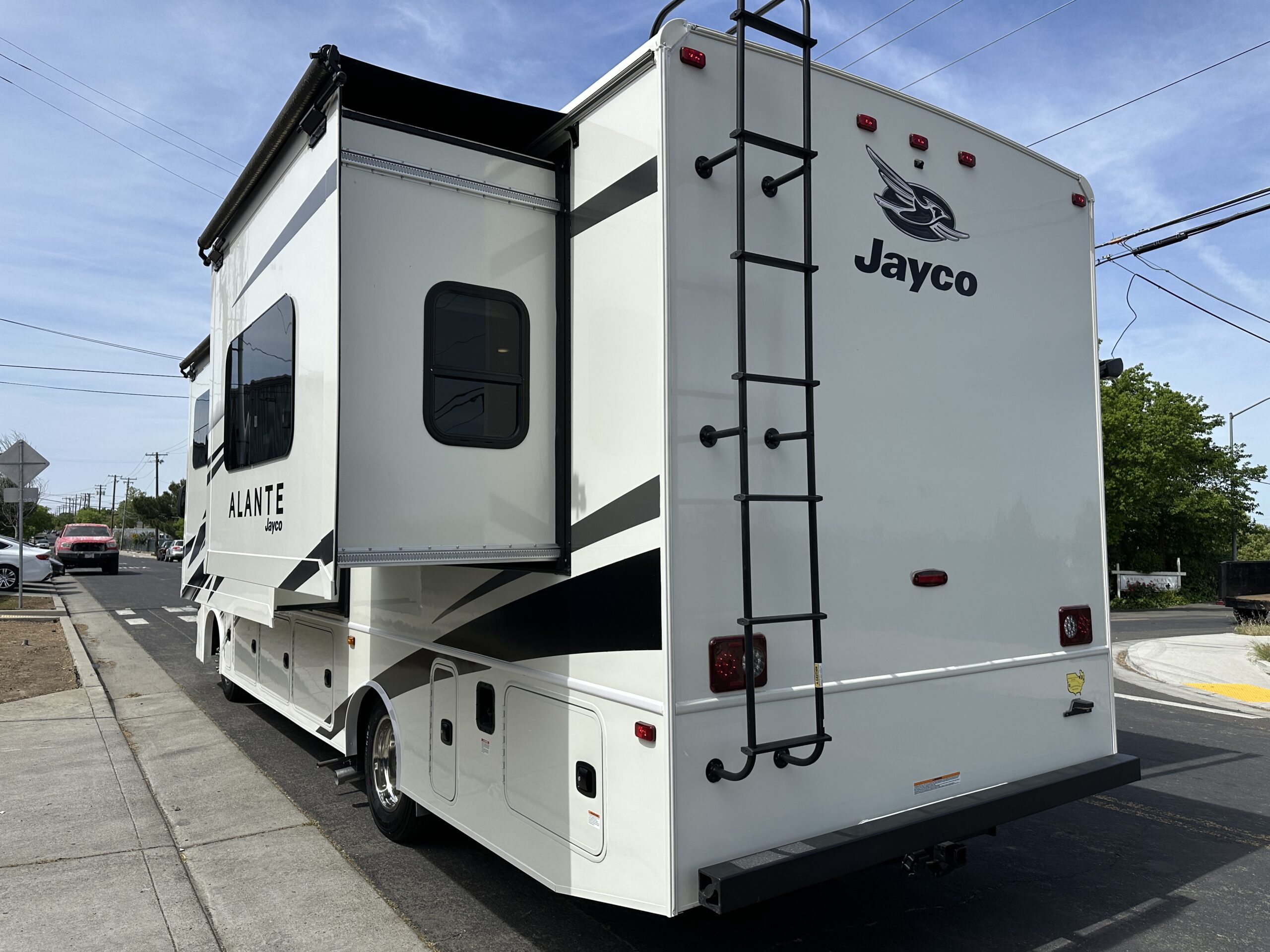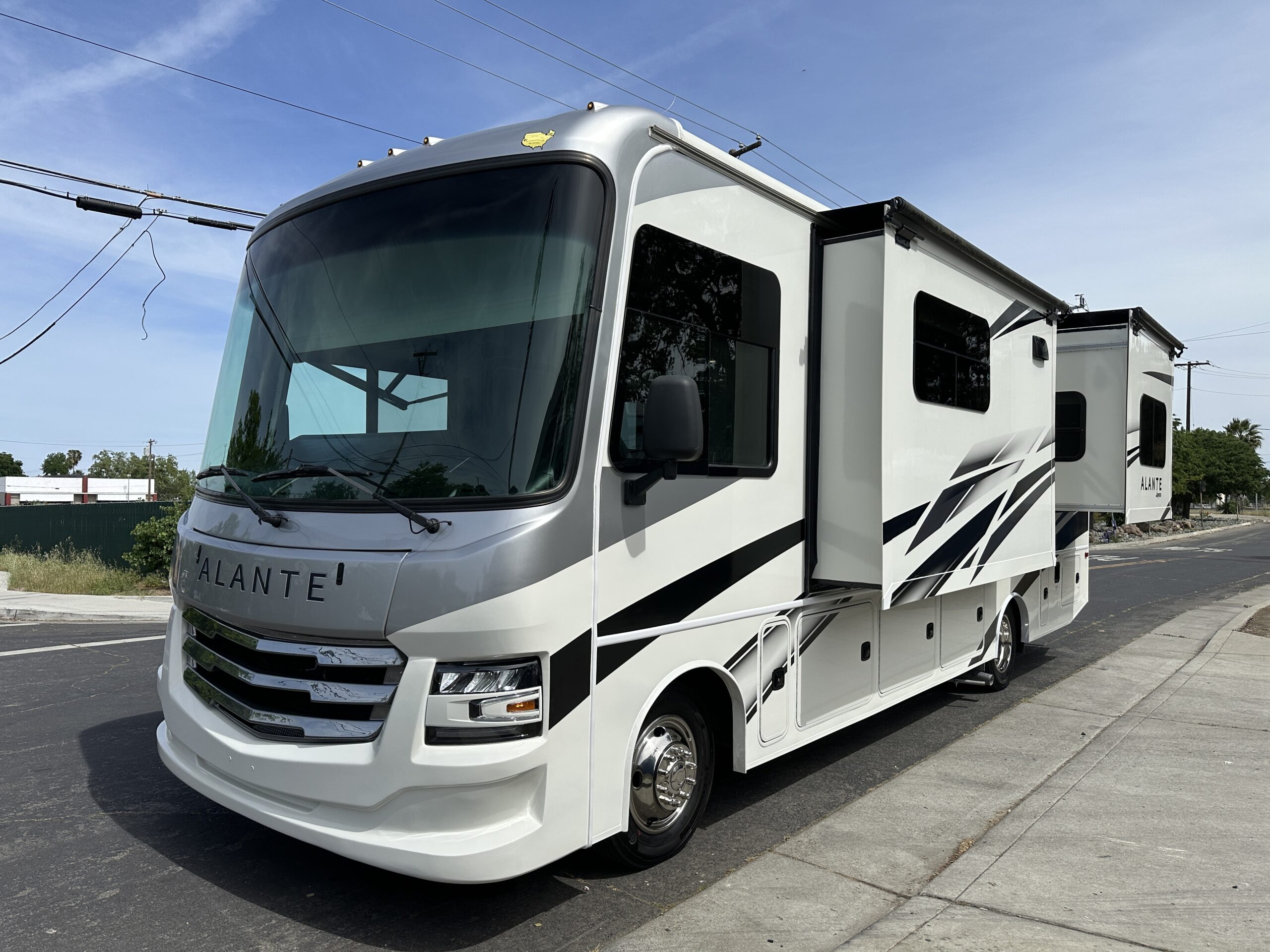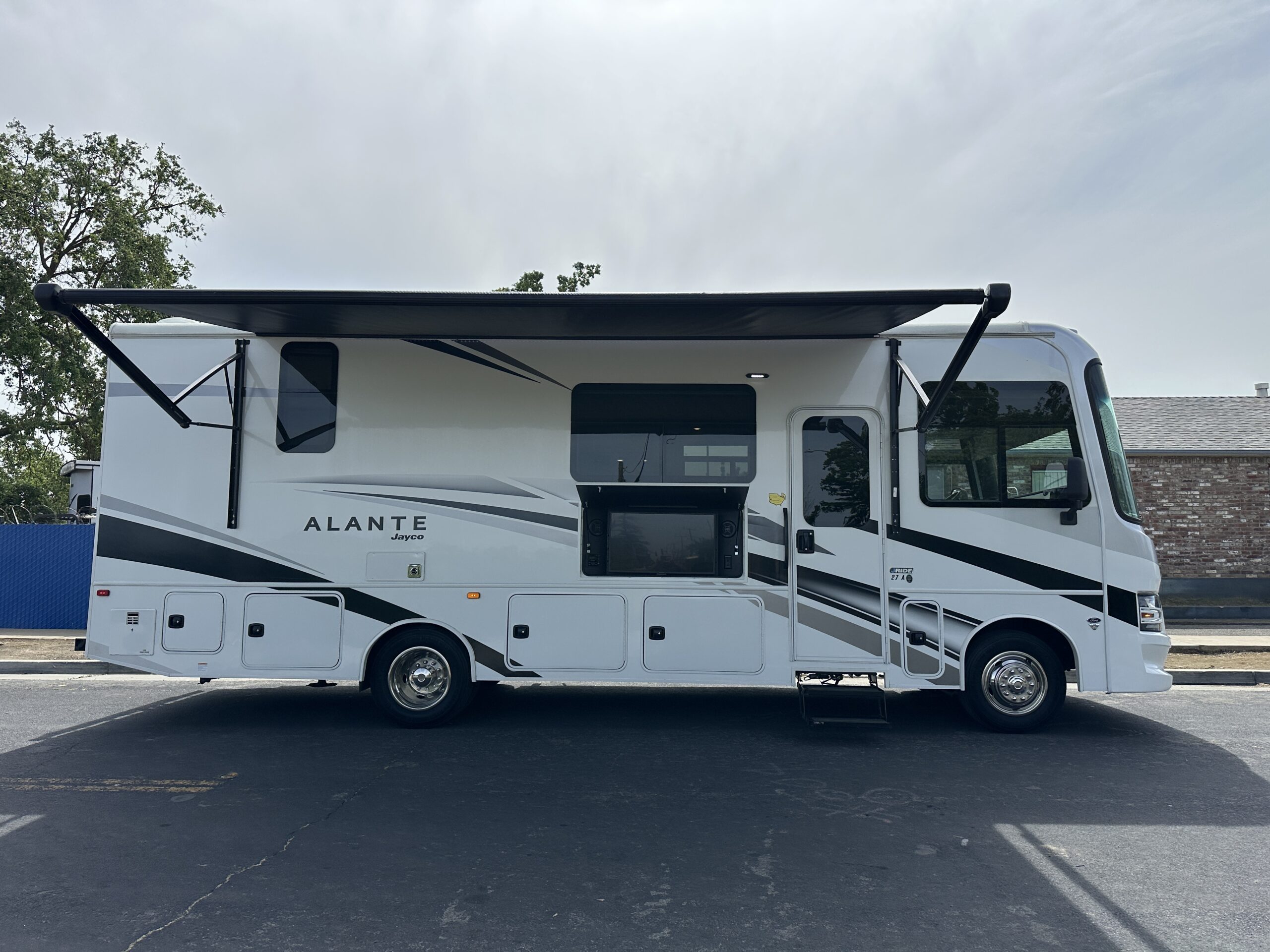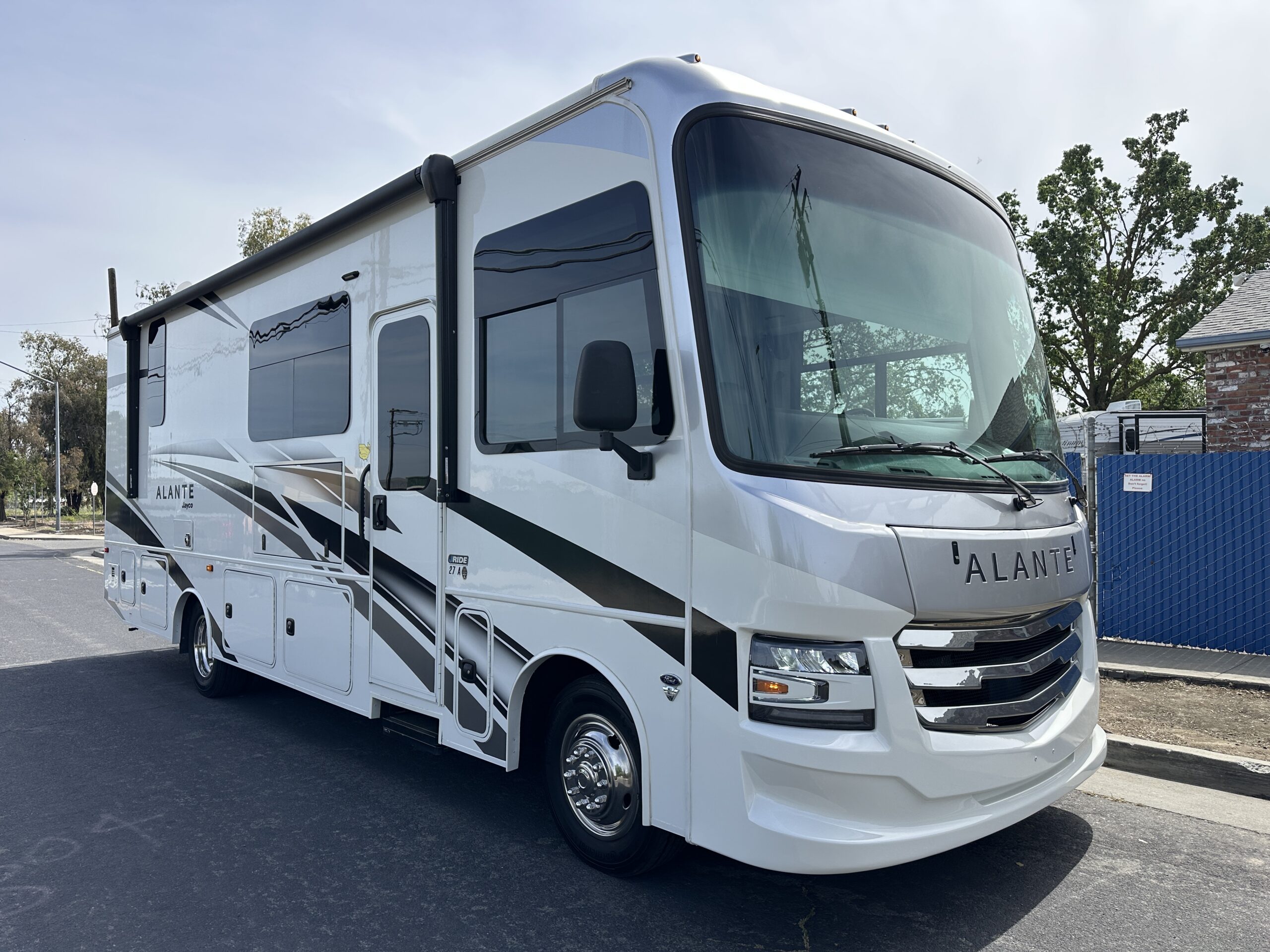 For sale is a 2024 Jayco Alante 27A on a Ford F53 Chassis, with 7.3L V8 Gas engine, paired with 6-speed automatic transmission, with rear wheel drive drivetrain and Towing capacity of 5,000 lbs. Comes with cruise control, smart stereo and side/rear camera system. The RV has only 4,474 miles, measures 29 feet 11 inches in length, features electric awning with LED lighting, Exterior tv, stereo and speakers, Solar, Fiberglass roof, 72 gallon fresh water tank, 50 gallon grey water tank, 49 gallon black water tank and 80 gallon gas tanks, with a GVWR of 18,000 lbs and 15,548 lbs dry weight. This RV comes with built in Onan 4KW gas Generator with 75 hours, four point hydraulic self leveling jacks, Gas Stove, Microwave, stainless Sink and much more. Please see over 190 pictures on our eBay listing.