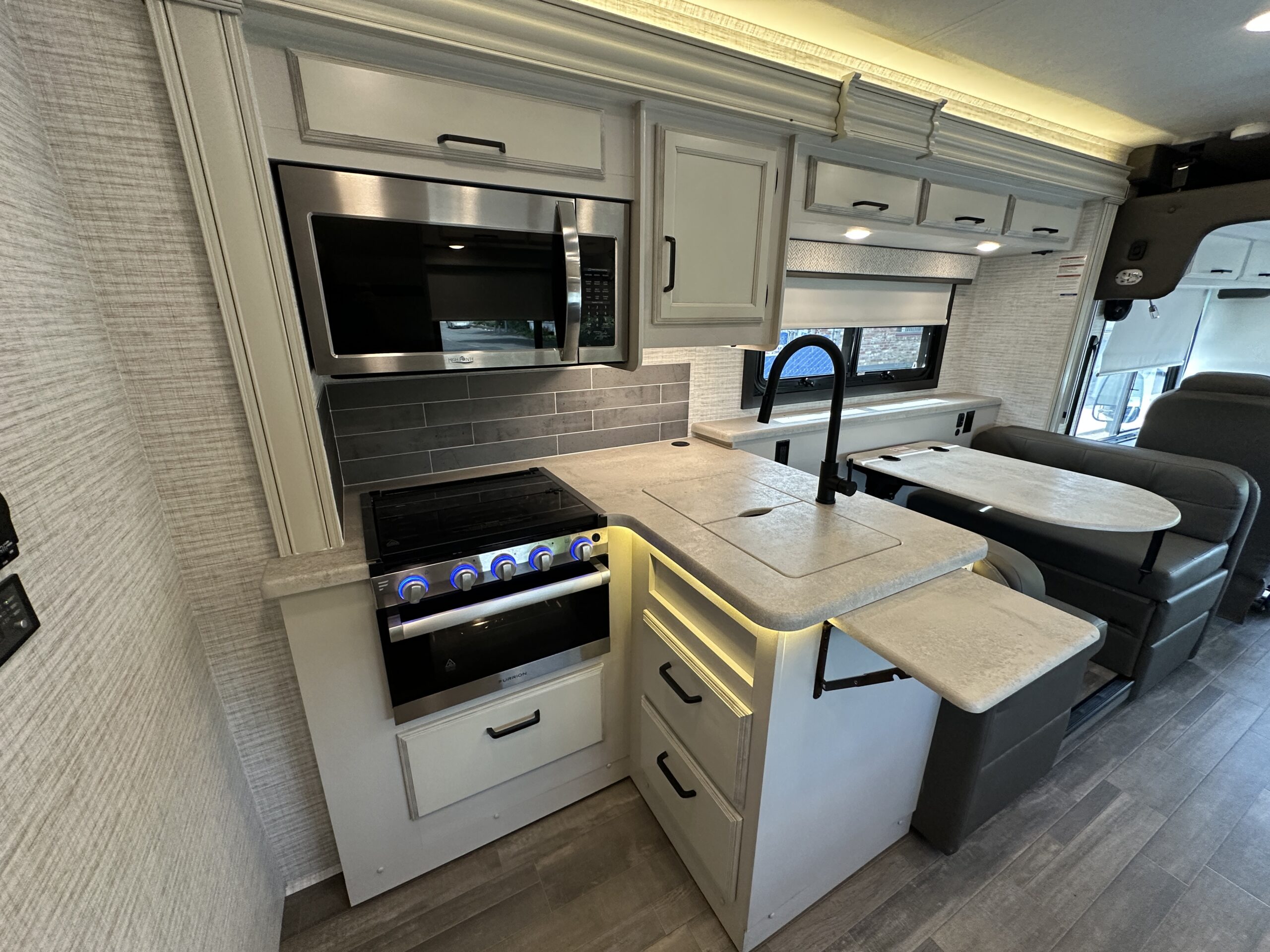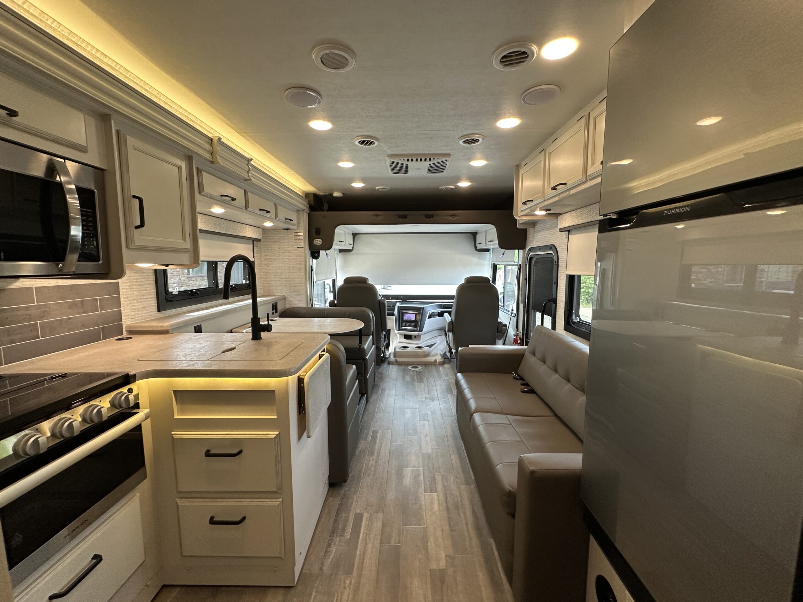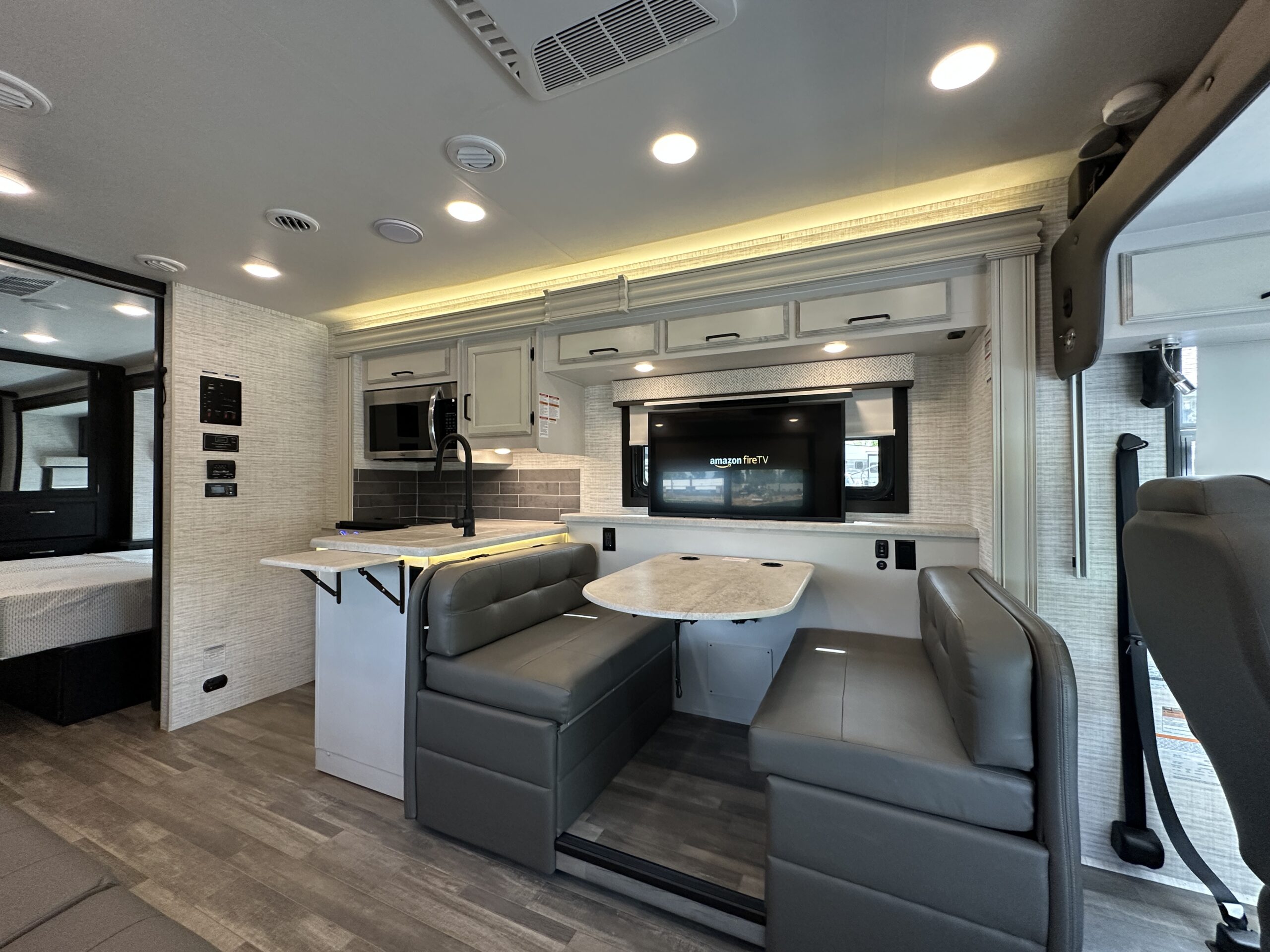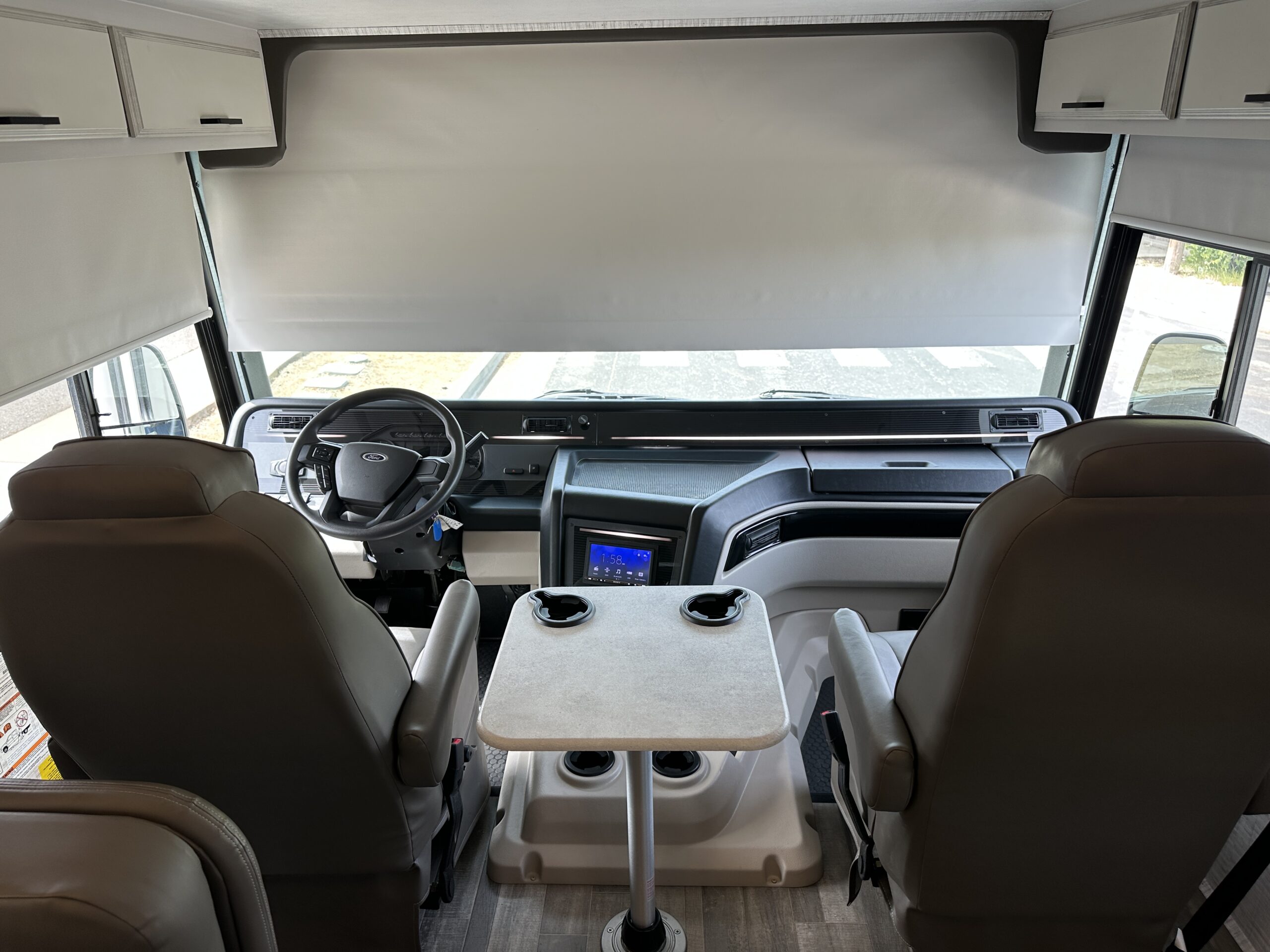 For sale is a 2024 Jayco Alante 27A on a Ford F53 Chassis, with 7.3L V8 Gas engine, paired with 6-speed automatic transmission, with rear wheel drive drivetrain and Towing capacity of 5,000 lbs. Comes with cruise control, smart stereo and side/rear camera system. The RV has only 4,474 miles, measures 29 feet 11 inches in length, features electric awning with LED lighting, Exterior tv, stereo and speakers, Solar, Fiberglass roof, 72 gallon fresh water tank, 50 gallon grey water tank, 49 gallon black water tank and 80 gallon gas tanks, with a GVWR of 18,000 lbs and 15,548 lbs dry weight. This RV comes with built in Onan 4KW gas Generator with 75 hours, four point hydraulic self leveling jacks, Gas Stove, Microwave, stainless Sink and much more. Please see over 190 pictures on our eBay listing.